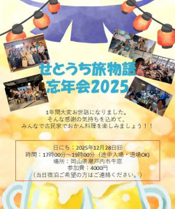 今年も12月28日17時~開催予定の「せとうち旅物語忘年会」開催を残すのみになりました!